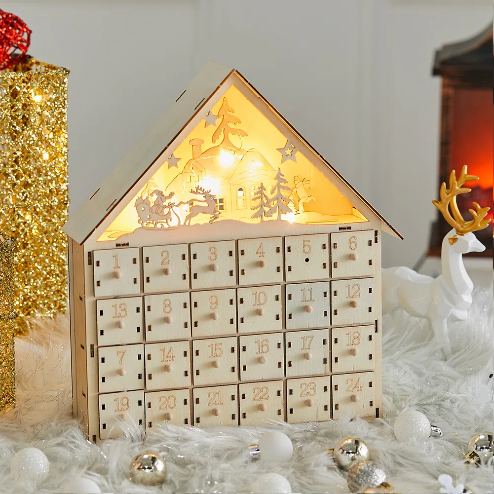 Wooden Advent calendars are always an excellent choice for Christmas countdowns because they’re sturdy enough to be reused year after year. Designed in the shape of a house, this wooden Advent calender makes a stunning match with a natural wood finish and the warm light. Under the roof, the calender depicts a harmonious village scene, which is sure to be grab the attention of your guests. Better yet, the calender contains 24 boxes in which you can hide treats or other fun trinkets.