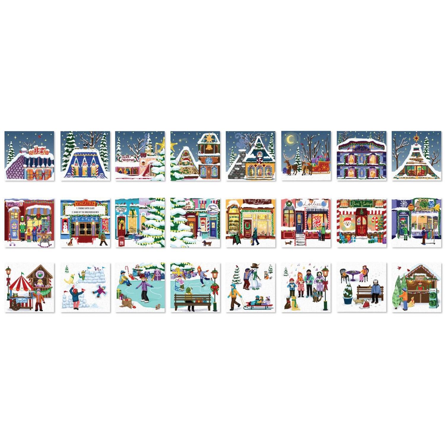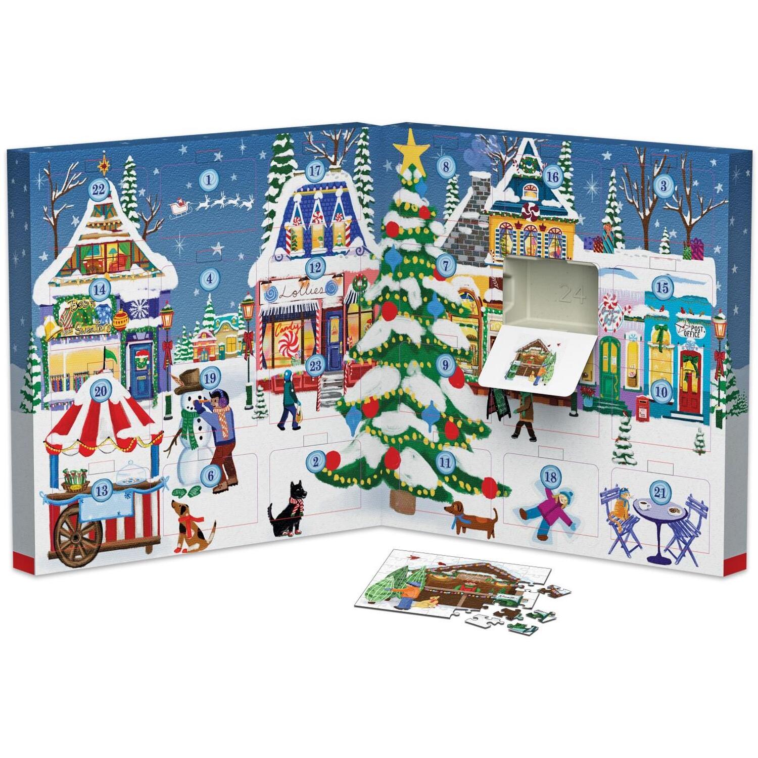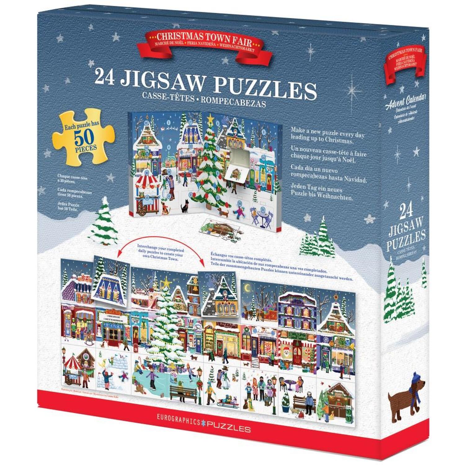 Bring the magic of the season to life with the Eurographics Advent Calendar Christmas Town Fair. Behind each of the 24 windows, youll discover a charming 50-piece jigsaw puzzle – perfect for counting down the days to Christmas in a fun and festive way.From twinkling market stalls and snowy trees to cosy cottages and cheerful characters, each puzzle reveals a delightful scene straight from a bustling Christmas town. As the days go by, piece together your very own winter wonderland full of holiday cheer!A wonderful tradition for families, puzzlers and anyone who loves Christmas – this unique advent calendar is bursting with seasonal joy.