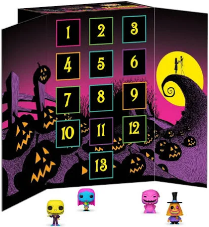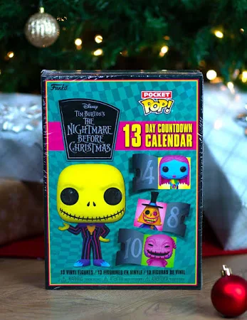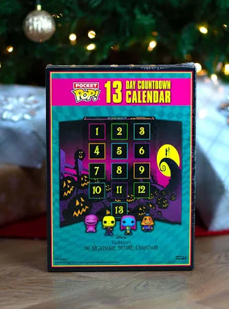 Count down to your favourite holiday, or any special occasion, with the Nightmare Before Christmas 13 Day Countdown Calendar! Open the tiny doors to reveal 13 unique Funko Pocket Pops! featuring some beloved residents from Halloween Town.