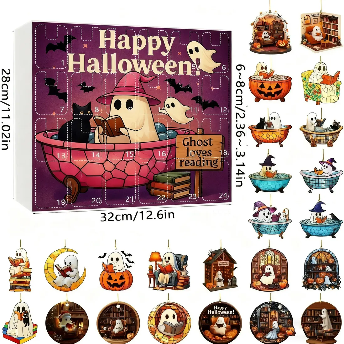24 Unique Ghost Acrylic Ornaments with the Halloween Countdown Calendar: Every day from October 1st to Halloween, open a numbered slot to reveal a one-of-a-kind ghost acrylic! Crafted from high-quality, clear acrylic, the shimmer under light, with vibrant, fade-resistant prints that retain their color year after year. Whether hung individually or grouped together, they add instant Halloween charm to any space. Premium Acrylic Material:Made from thick, shatter-resistant acrylic, these are built to last—no need to worry about fragile glass breaking during unpacking or decoration. The material’s transparency gives the ghosts a “floating” effect, making them look like they’re hovering when hung on walls, Christmas trees , or door knobs. Each ornament is lightweightand smooth to the touch, blending durability with whimsical style. Interactive Countdown Fun:This isn’t just a decor set—it’s an interactive experience for the whole family! Kids will love waking up each day to open a new ghost,marking the days until trick-or-treating and Halloween parties. Perfect Halloween Gift: Searching for a unique Halloween gift? This countdown calendar is a standout choice! It’s ideal for kids who love daily surprises, teens who enjoy cute spooky decor, and adults who collect Halloween memorabilia.