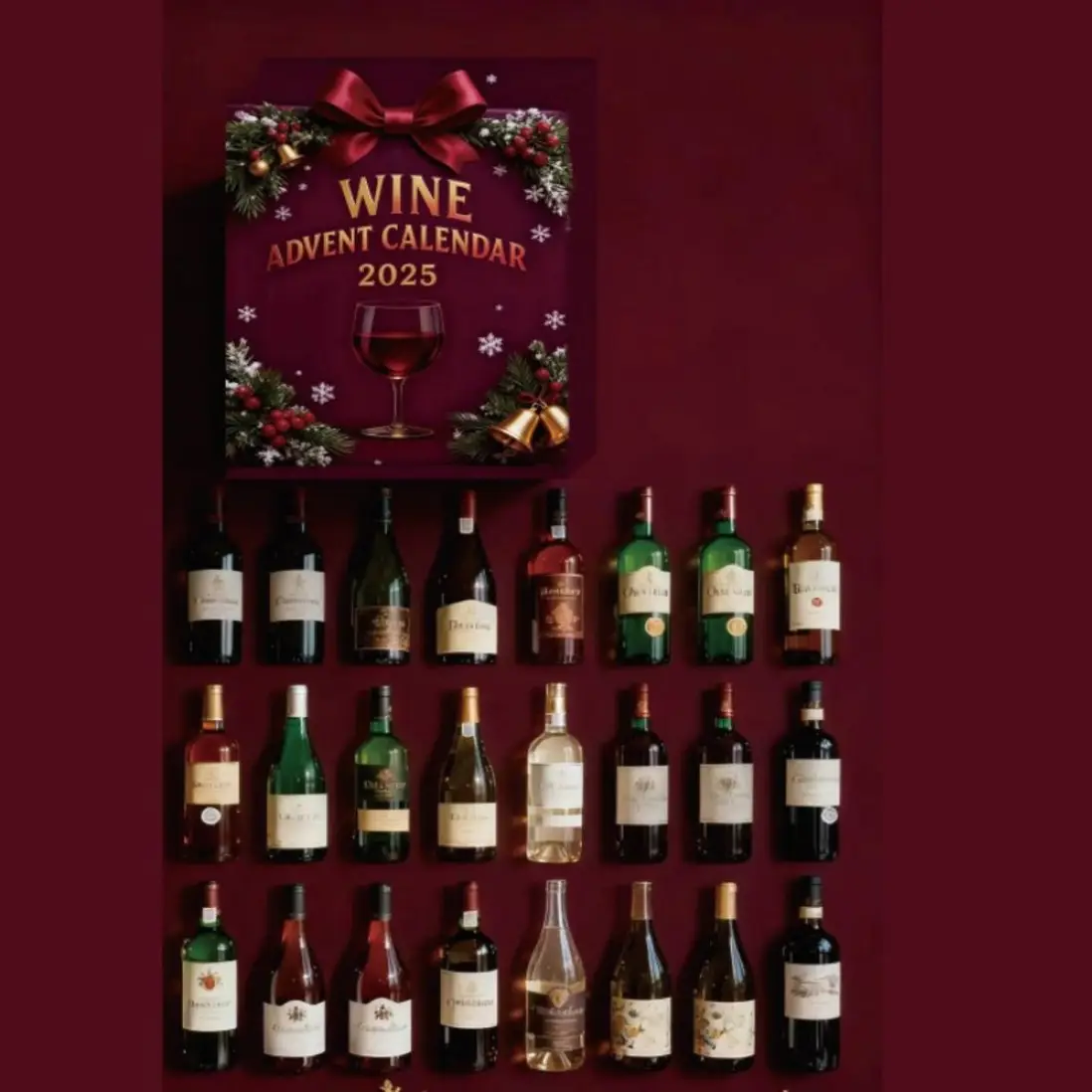 This 3D wine advent calendar features 24 resin windows hiding miniature models of world-renowned wines. Each exquisitely crafted bottle showcases distinct labels and precise details, creating a sophisticated countdown tradition for adult wine enthusiasts.