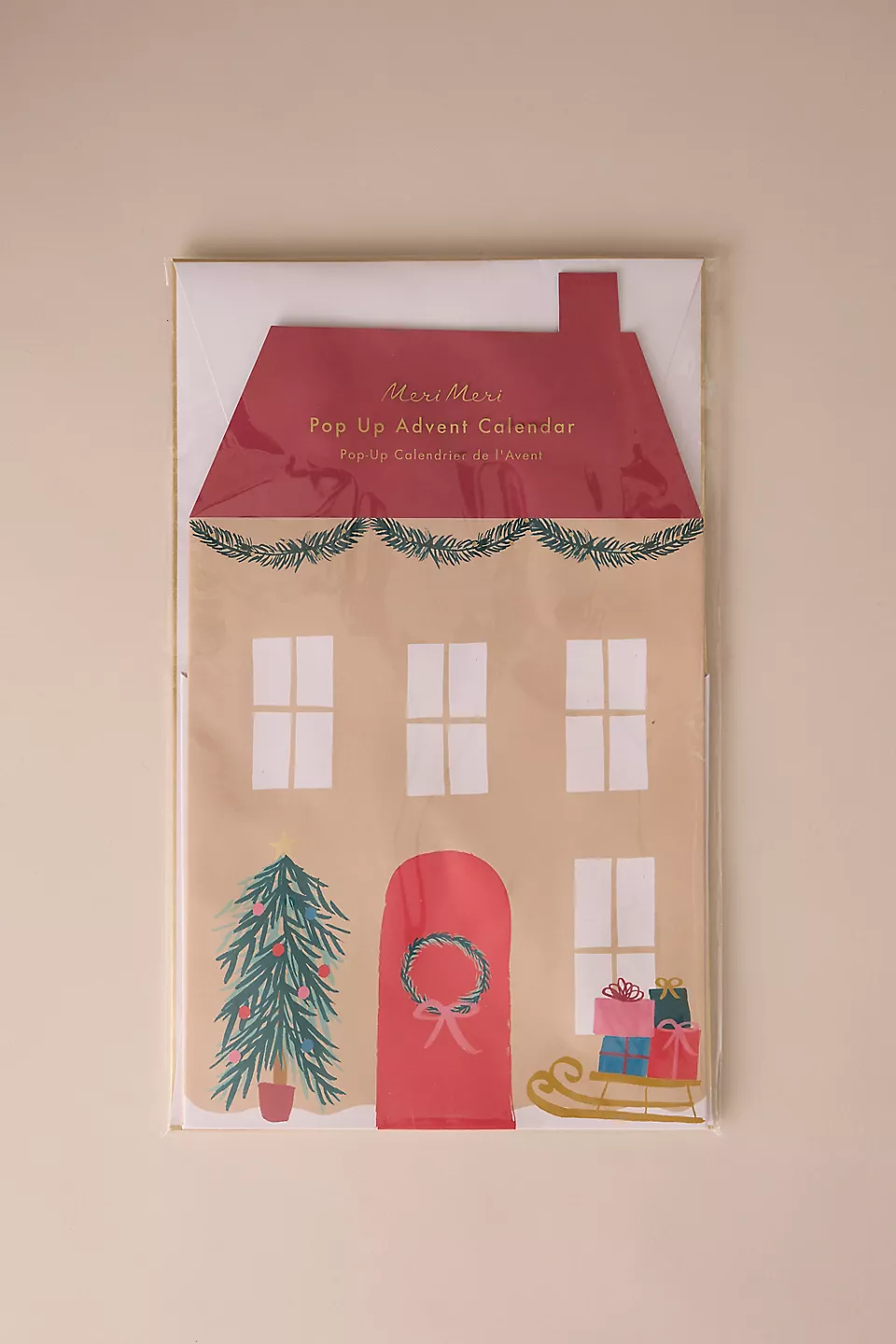 This beautiful advent calendar is crafted of paper and presented in a stylish envelope. Each day open the windows and pop up icons to reveal Santa, his elves and reindeer, plus a Christmas tree and gifts.