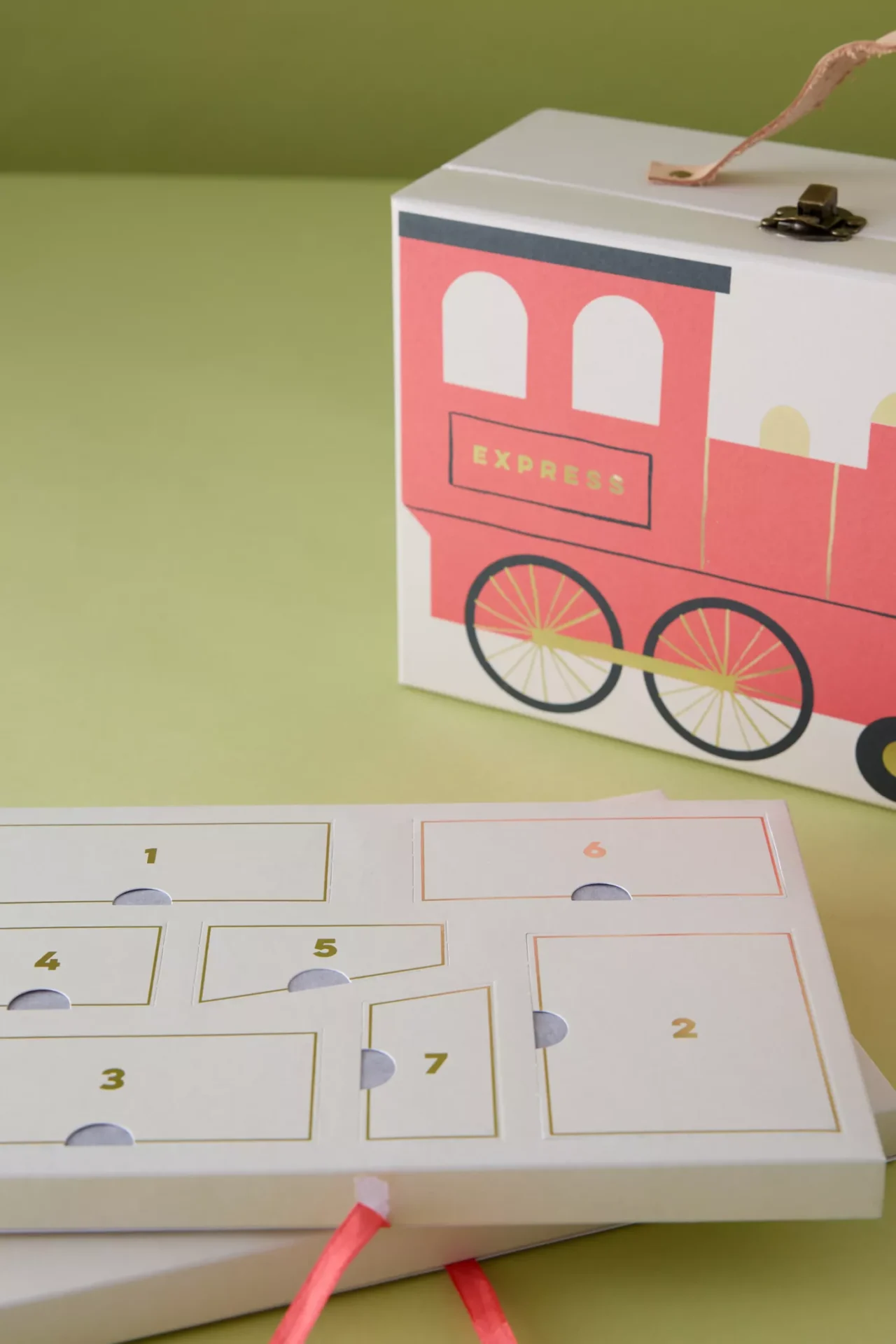 The Meri Meri Train Advent Calendar is A lovely toy for train lovers, each day open the numbered doors to reveal wooden trains and accessories to create a festive railway scene.